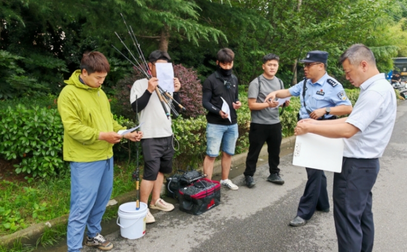 6月11日,联合执法人员巡查至武定门节制闸下游左岸区域,发现数名垂钓人员无视禁止垂钓的警示标志,擅自垂钓。执法人员立即行动,依据《中华人民共和国水法》、《江苏省河道管理条例》等相关法律法规,责令其停止违法行为,现场开具告知书,并对违规人员进行严肃批评教育。执法过程中,执法人员坚持处罚与教育相结合,向违规钓鱼人员及周边群众详细讲解在水利工程安全警戒区范围内违规捕(钓)鱼的危害性及相关法律责任,强调水利工程安全的重要性,引导公众自觉遵守法律法规,选择安全、合法的垂钓区域。